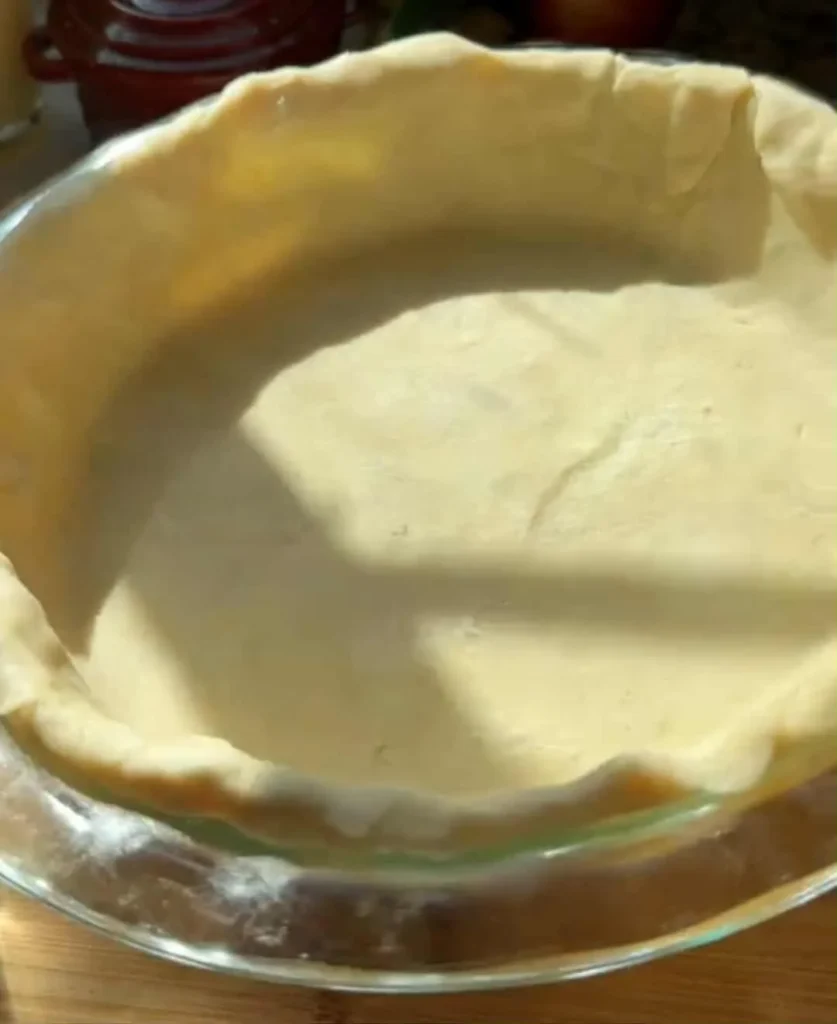 Roll out the chilled pie crust into a 12-inch circle and place it in a 9-inch pie dish. Trim or fold the edges neatly, cover, and refrigerate while preparing the filling.