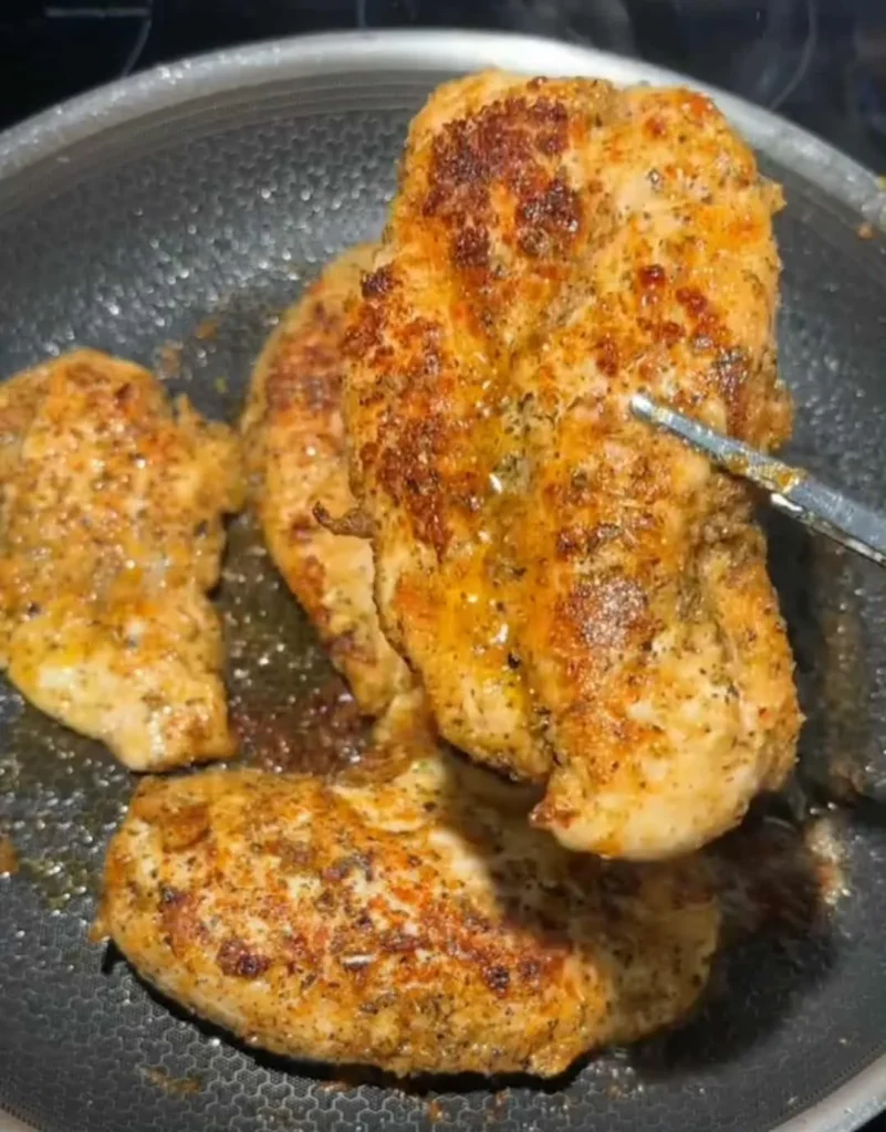 - Sear chicken breasts for 5–8 minutes per side until cooked. Remove and slice.