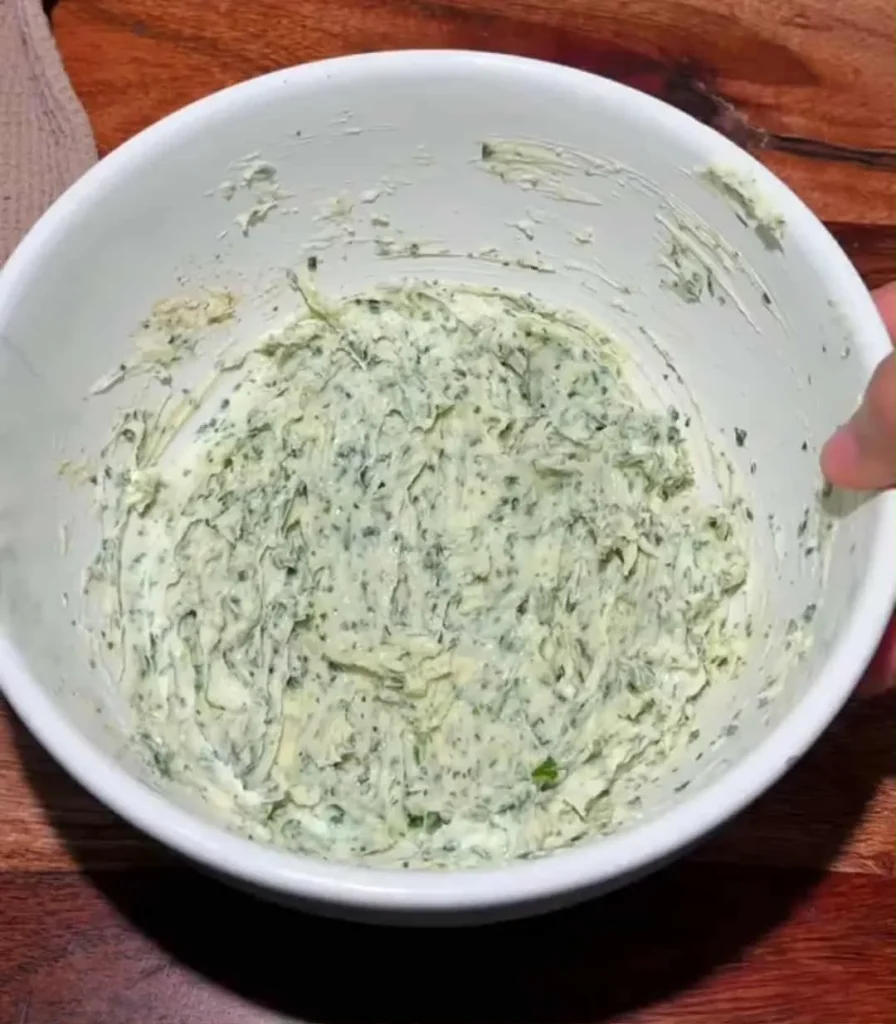- Mix softened butter, garlic paste, parsley, garlic powder, salt, and pepper.