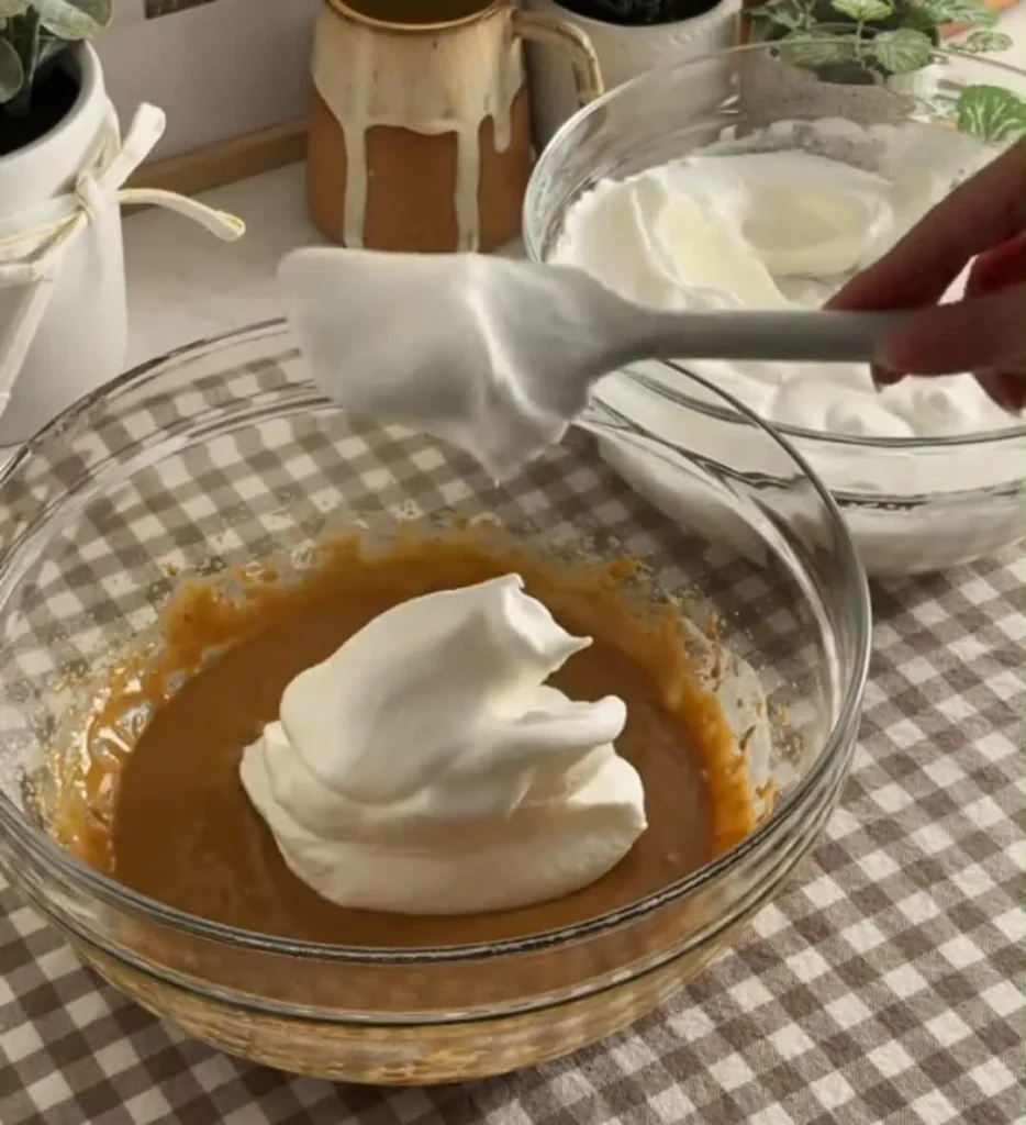 - Combine: Gently fold the meringue into the yolk mixture in three additions, folding carefully to keep the batter airy.