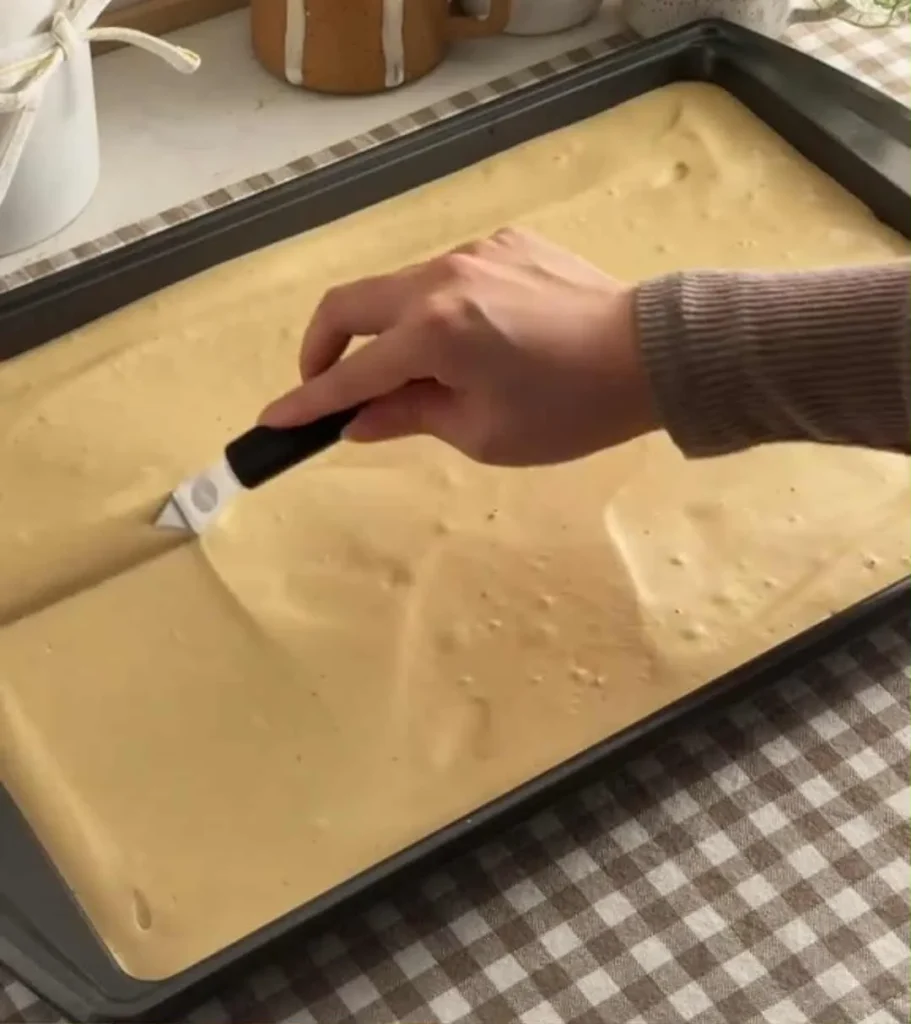 - Pour and spread the batter evenly into the tray using an offset spatula.