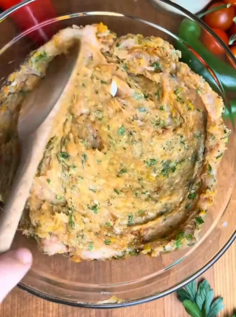 • Mix well for 2–3 minutes until the texture becomes sticky and cohesive (this helps bind the kefta without eggs).